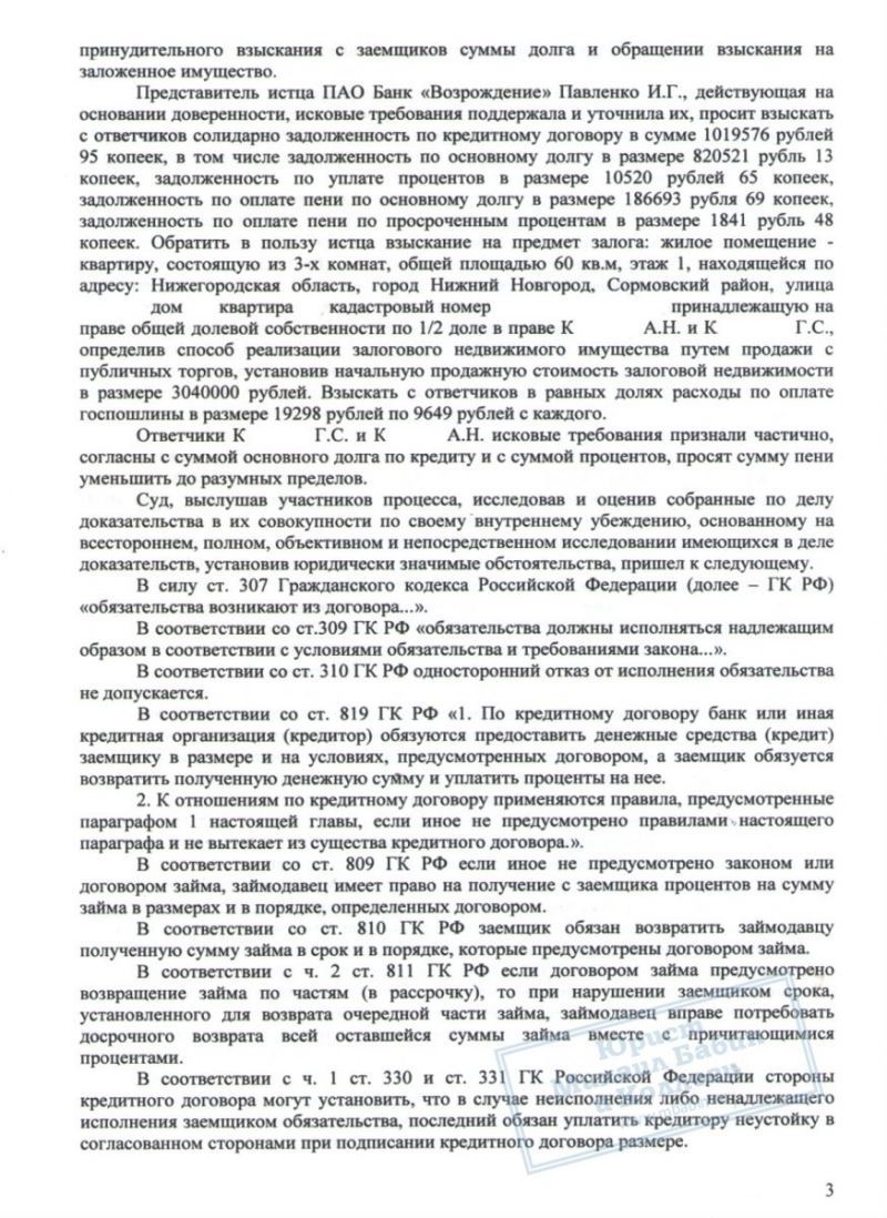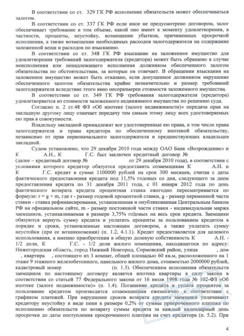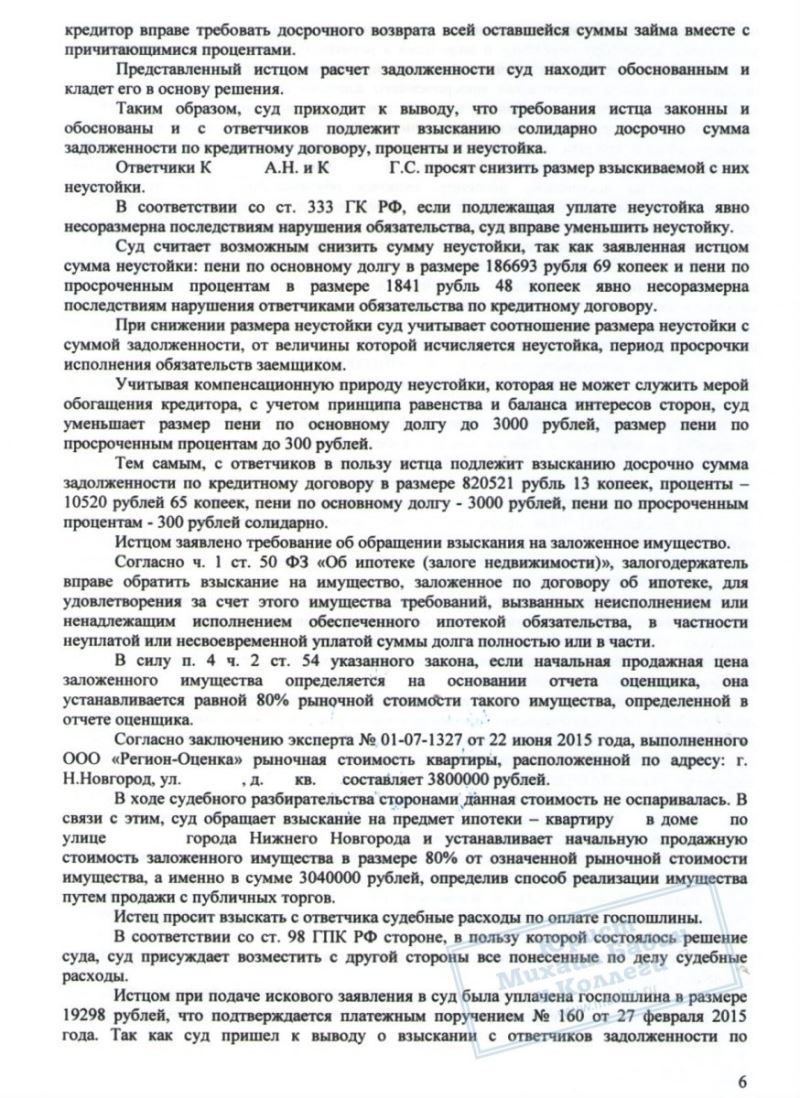 Несколько лет супруги К. выплачивали ипотеку, но начали допускать просрочки выплат - и банк потребовал досрочно вернуть весь оставшийся долг, а именно 1.020.000 руб. Естественно, такой суммой К. не обладали, и задолженность должна была быть возвращена путем ареста и продажи банком их жилплощади. При этом её стоимость была определена всего в 1.680.000 руб. То есть почти все деньги от квартиры должны были уйти на оплату долга.