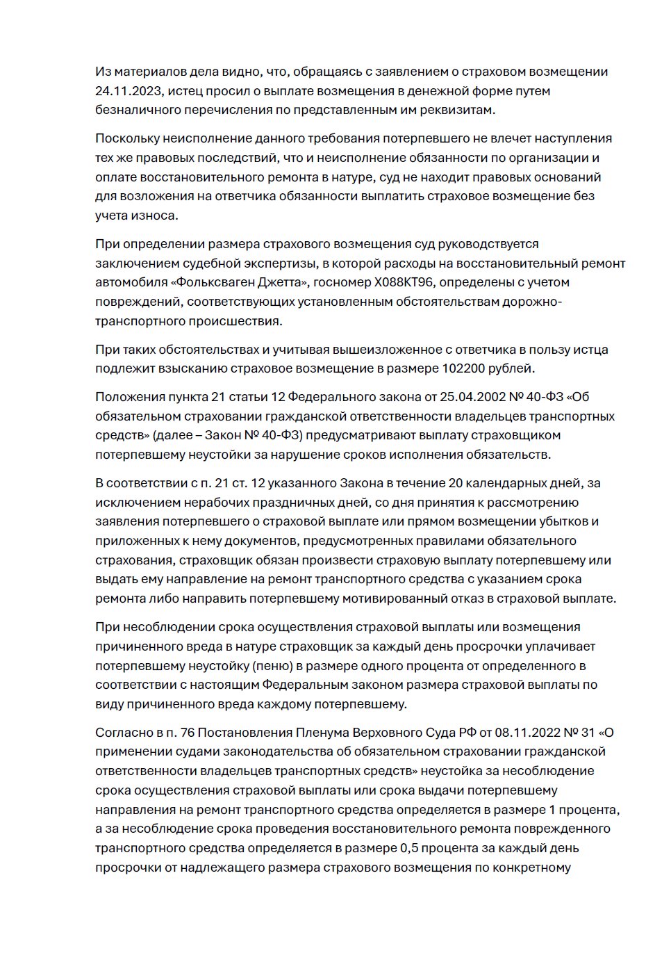 • страховое возмещение - 102 200 руб.