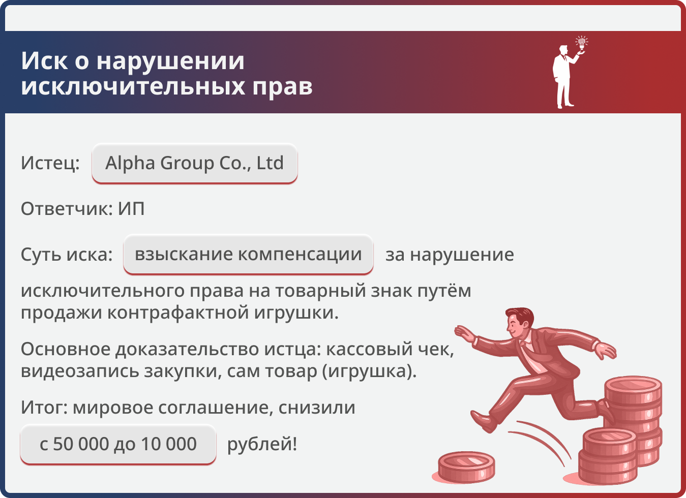Мировое соглашение с Alpha Group: снижение компенсации за товарный знак с 50 000 до 10 000 рублей