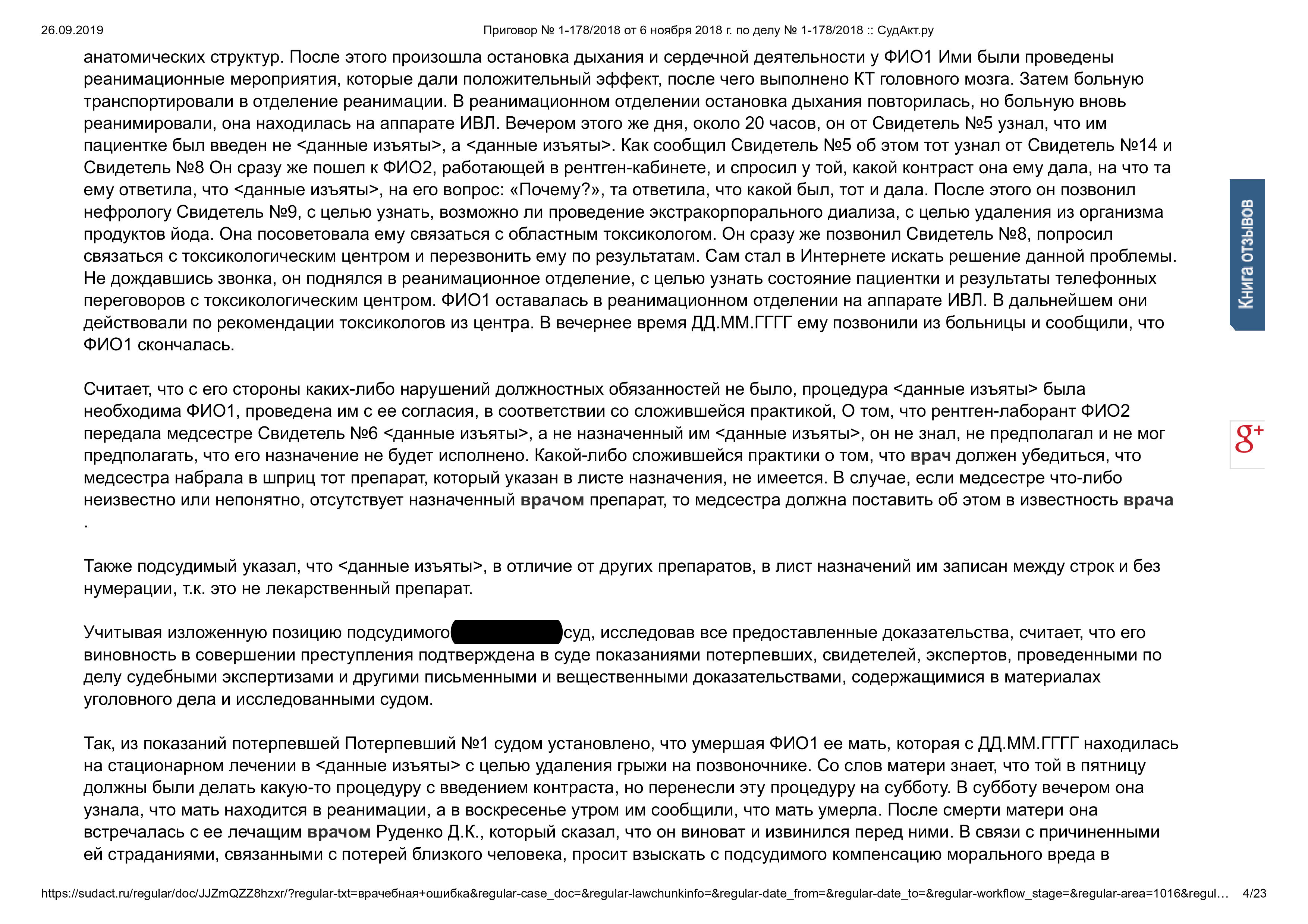 Главное, что нужно было доказать — прямую связь между действиями врача и смертью. Ответственность за введение препарата целиком лежит на враче. Он обязан визуально проверить ампулу и убедиться, что вводит именно то, что назначено.