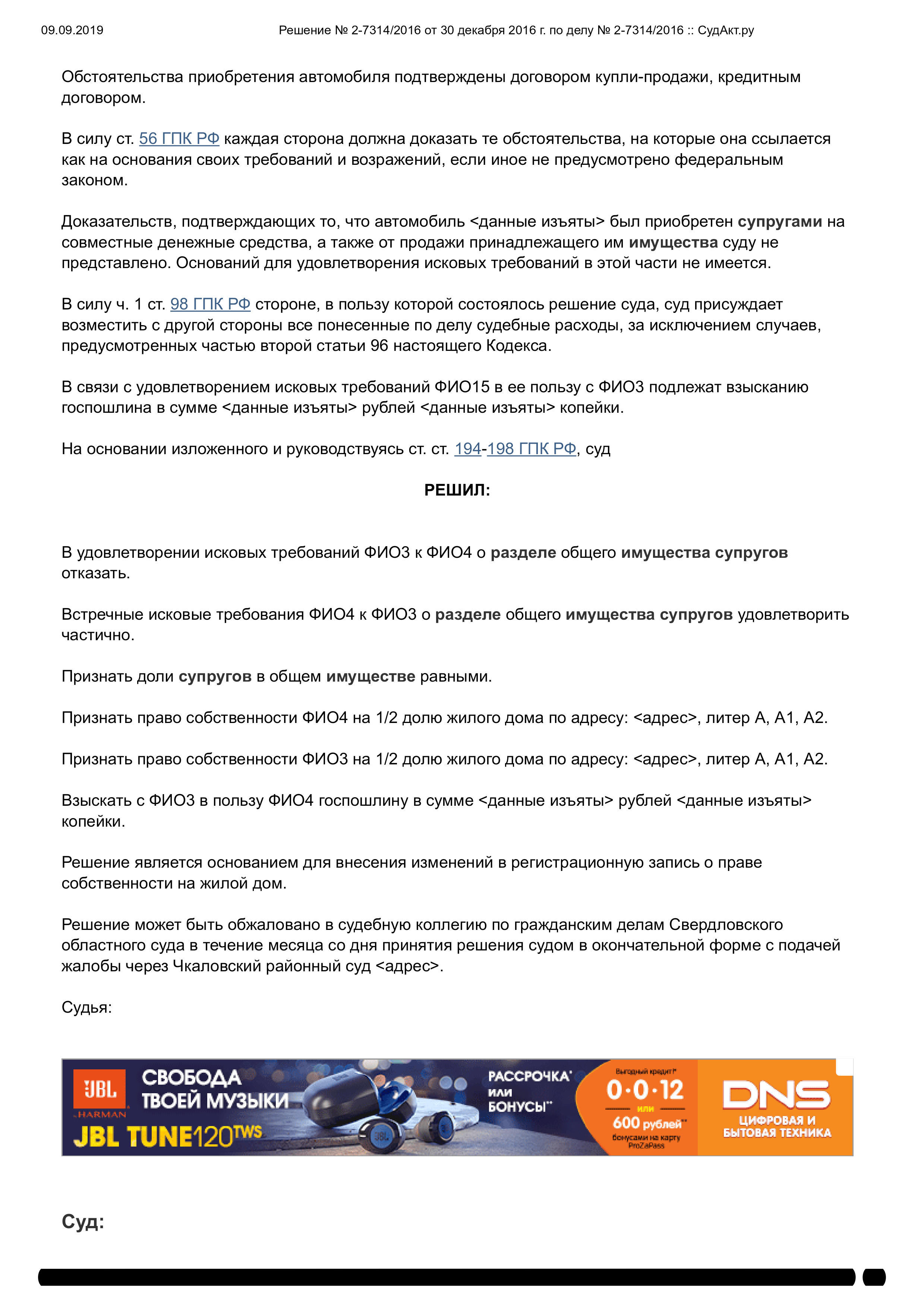 Защитить интересы нашего клиента при разделе имущества после развода
