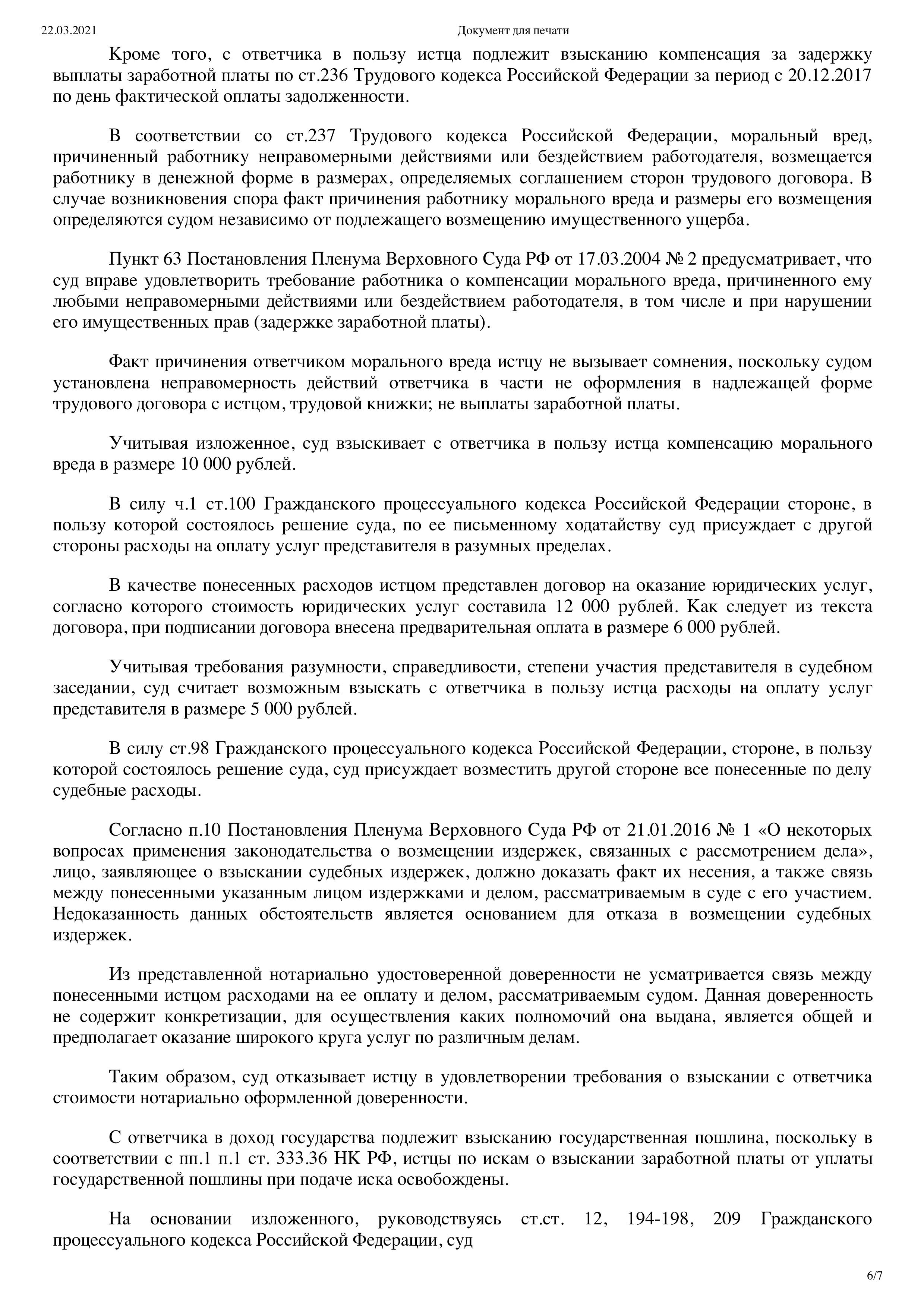 Установление факта трудовых отношений взыскание ЗП и компенсаций