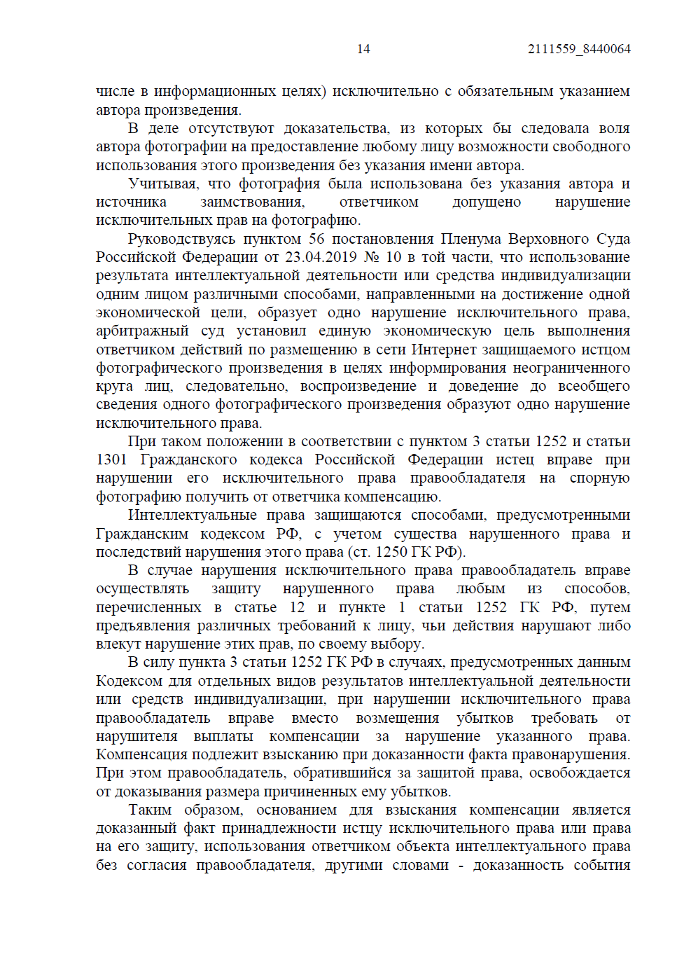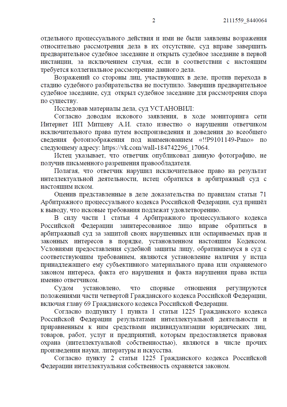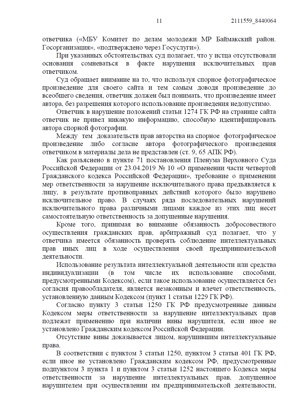• Ответчик настаивал, что публикация носила информационный характер (цитирование). Однако мы указали суду на императивное требование ст. 1274 ГК РФ: любое свободное использование возможно только с обязательным указанием имени автора и источника заимствования, чего сделано не было.