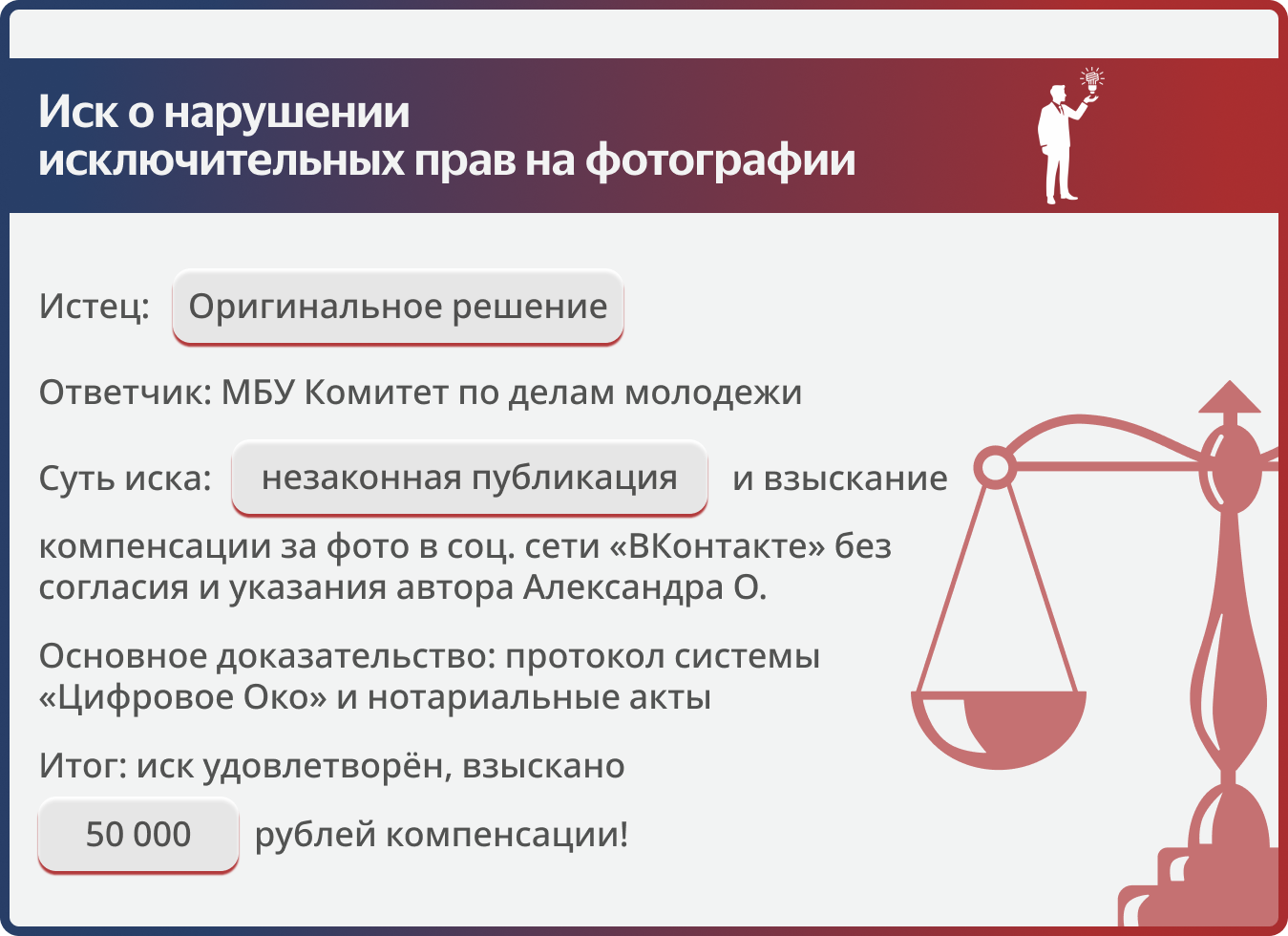 50 000 рублей за одно фото: как мы наказали муниципальное учреждение за нарушение авторских прав в соцсетях.