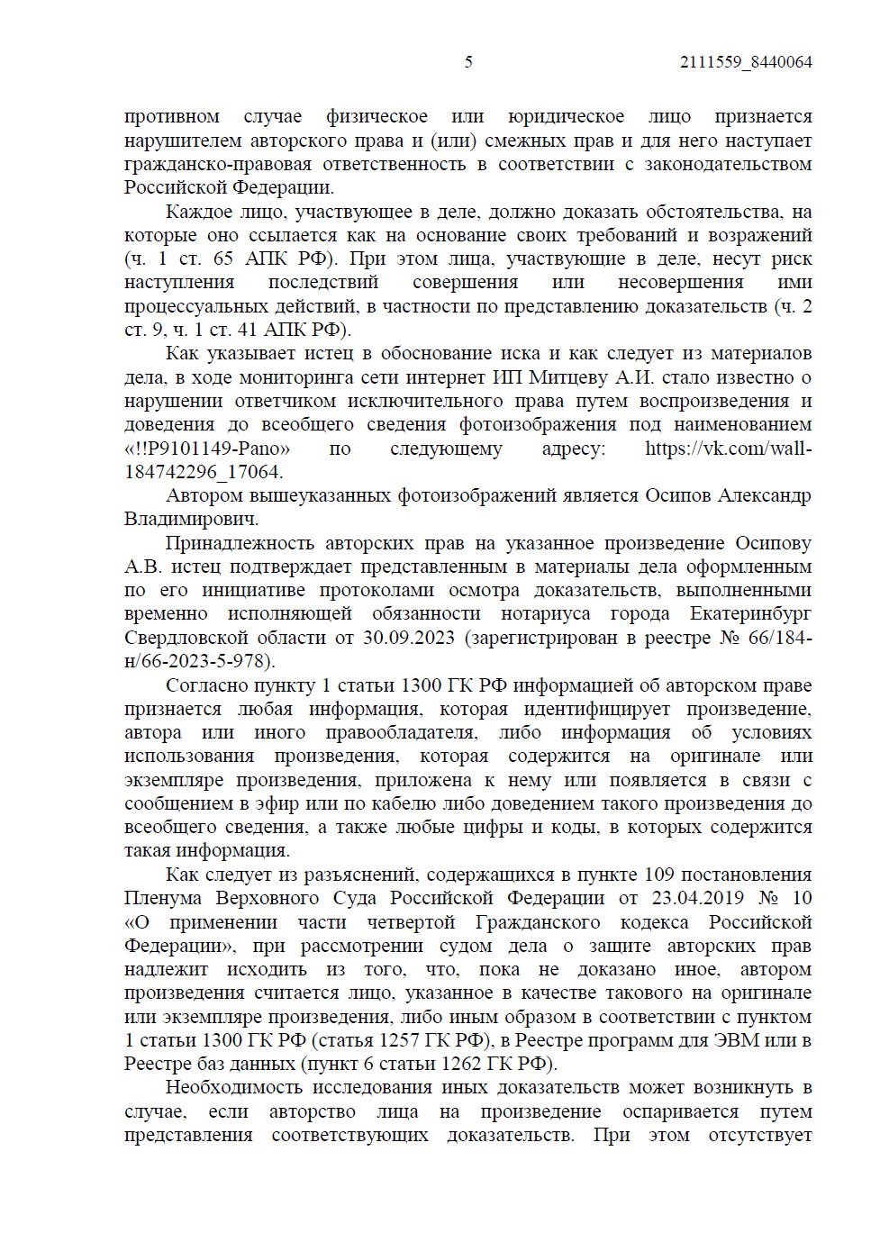 • Факт публикации был зафиксирован не только скриншотами, но и с помощью автоматизированной системы «Цифровое Око», а также нотариального протокола осмотра доказательств.