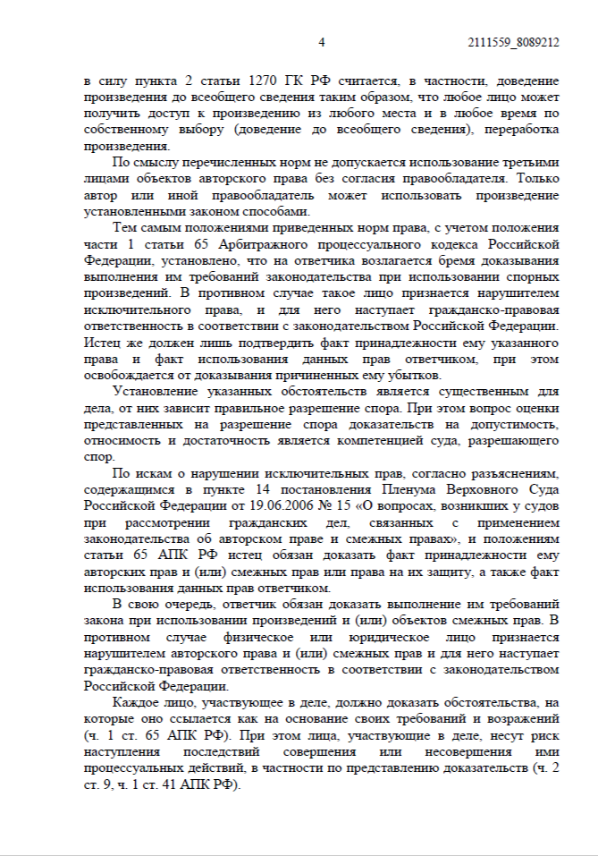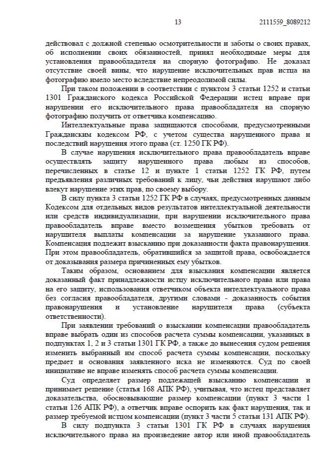 Мы ссылались на нормы статей 1229, 1252, 1270 и 1301 ГК РФ, подтвердив, что изображения использовались в коммерческих целях без согласия правообладателя.