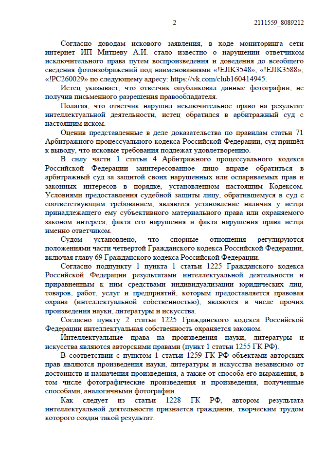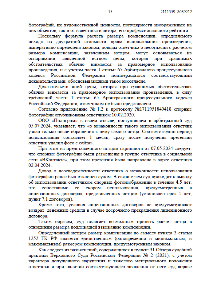 • Ответчик заявил, что узнал о нарушении только из нашей претензии и сразу удалил фото. По их версии, период незаконного использования составил всего 1 месяц.